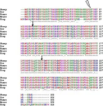* asterisk Conserved sequence (identical)