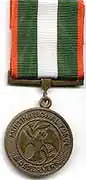 The MFO Civilian Service Medal is awarded to MFO Civilian staff members not eligible for the MFO Medal, and to members of the prime Sinai Support Contractor staff in recognition of honorable service at any MFO location. Eligibility for this award will be the satisfactory completion of 12 months (minimum 360 days) of contract service with the MFO in any of its installations. However, eligibility will be considered satisfied in the event that, the award is made posthumously, or the member becomes medically unfit for further service with the MFO or the prime Sinai Support Contractor due to service-incurred injuries or illness.[1]