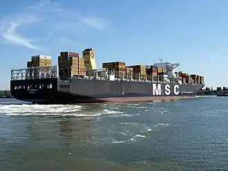 MSC Daniela is the lead ship of her class of container ship operated by the Mediterranean Shipping Company that at 366 metres (1,200 ft 9 in) is one of the largest container ships of the world, with a twenty-foot equivalent unit (TEU) cargo capacity of 14,000 containers. The building of MSC Daniela was started on 1 July 2006 and finished at the end of 2008; the ship was subsequently crowned as the largest according to cargo capacity. The shipbuilder was Samsung Heavy Industries in Geoje, South Korea.