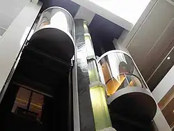 The glass lifts in the atrium are one of the Pont-Aven's cruise ship-like features.
