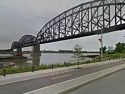 From 1929 through 1955, the MacArthur Bridge carried U.S. Highway 66[2] until the completion of the nearby Poplar Street Bridge. From 1947 to 1974, U.S. Highway 460 crossed the bridge, terminating on the west side of the bridge.