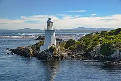 - Entrance Island – at entrance to harbour (42° 12′ S, 145° 14′ E)