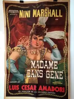 Madame Sans-Gêne is a 1945 Argentine historical comedy film of the classical era of Argentine cinema, directed by Luis César Amadori and starring Niní Marshall, Eduardo Cuitiño and Herminia Franco.[1][2] It is based on the 1893 play Madame Sans-Gêne by Victorien Sardou and Émile Moreau. The film's sets were designed by the art director Hans Jacoby.