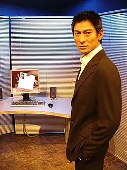 • The figure of Andy Lau (unveiled April 2005) – the museum's first animatronic figure, made from silicone rather than wax. Lau's model features a heartbeat mechanism inspired by a similar animatronic installed for Brad Pitt in the Madame Tussauds Amsterdam.[8]