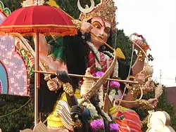 Madikeri Dasara (Kannada: ಮಡಿಕೇರಿ ದಸರ) is the Dasara festival is celebrated in the city of Madikeri in the Indian State of Karnataka. It has a history of over a hundred years. Madikeri Dasara is a ten-day celebration, which is beautified by 4 Karagas and 10 Mantapas depicting killing of Asuras (demons) by Suras (God/Goddess). Preparation for Madikeri dasara starts before 3 months. Most of the money for this celebration is collected from the people of Kodagu. Each of these 10 Mantapa committee has 50 to 100 members. A Mantapa comprises idols of height 8 to 15 feet, which is set up at the front of a lighting board. The cost of building a Mantapa will be ₹10 to 20 Lakhs.