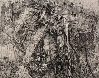 D Venkatapathy uses steel pen and water-proof black ink based drawing to create lines and textures are using pointillistic technique (1980).