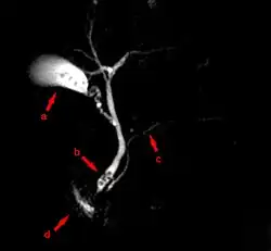 - ^ Prasad, SR; D. Sahani; S. Saini (November 2001). "Clinical applications of magnetic resonance cholangiopancreatography". Journal of Clinical Gastroenterology. 33 (5): 362–6. doi:10.1097/00004836-200111000-00004. PMID 11606850. S2CID 28902645.