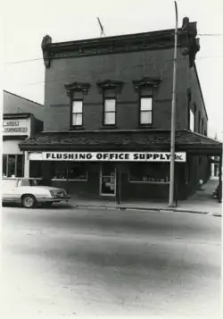 The Main Street Historic District, located in Flushing Michigan, includes buildings on Main St from Maple to 628 (East) Main St and the Flushing Depot at 431 W Main St. Properties in this district are listed on the National Register of Historic Places. 82 structures located on 22.4 acres of land create the district with commercial buildings reflecting ornate Italianate and early twentieth-century styles constructed between 1850 and 1918 and residences exhibiting a wide variety of Greek Revival, Italianate, Queen Anne, Colonial Revival, and Bungaloid styles and their vernacular derivatives built from 1850 to 1932.. Properties we added as part of the Main Street Historic Commercial District and the Genesee County MRA (Multiple Resource Area).[1]