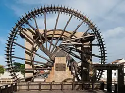 Malacca Sultanate Watermill (Malay: Kincir Air Kesultanan Melayu Melaka, lit. 'Malacca Malay Sultanate Watermill') is a replica watermill located along the bank of Malacca River in Malacca City, Malacca, Malaysia, which was built in 2007 and completed in March 2008.[1] It is the first and largest watermill in Malaysia, standing at a height of 13 meters and was built based on Islamic technology found in Syria and China.[2] The concrete structure is what remains nowadays, the wooden wheel is not present anymore and the attraction has fallen into decay.