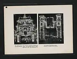 The Indian Community's Arch at the junction of Chulia & Pitt Streets during the night (right), Penang, 1937.