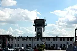 During World War II the airport was severely damaged. After the war the airport was occupied by the US-Army and temporarily used as a transmitter site.[4] The terminal building and hangars were partly demolished and partly refurbished. The airfield was reopened to the public in 1958, but with the growing size of postwar aircraft, Mannheim-Neuostheim was no longer served by any major airline and mainly used for private flying.