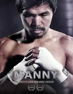 Manny is a 2014 American documentary film that is directed by Leon Gast and Ryan Moore.[1] It covers the life of professional boxer Manny Pacquiao, from his impoverished life as a young boy to his boxing glory and entrance into Philippine politics. The film is narrated by Liam Neeson.[2] Additionally, interviews of friends, family members, and people associated with professional boxing, combined with archival footage of Pacquiao, were used throughout the film. Notable appearances in the film include Oscar De La Hoya, Jimmy Kimmel, Jeremy Piven, and Mark Wahlberg.