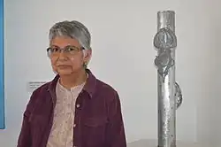 Reid with one of her pieces at the Salón de la Plástica Mexicana