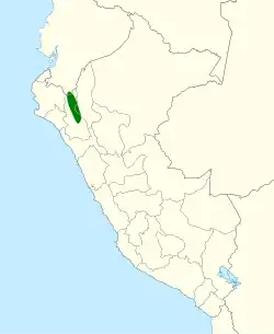 The Marañón sparrow was formally described in 1880 by the Polish zoologist Władysław Taczanowski based on a single specimen that had been collected by the Polish zoologist Jan Sztolcman at Callacatein in the Department of Cajamarca of northern Peru. Taczanowski coined the binomial name Arremon nigriceps where the specific epithet combines the Latin niger meaning "black" with -ceps meaning "-headed".[2][3] This sparrow was formerly considered by many ornithologists to be a subspecies of the black-capped sparrow (Arremon abeillei) but is now treated as a separate species based on the differences in plumage and vocalizations as well as the significant genetic divergence.[4][5]