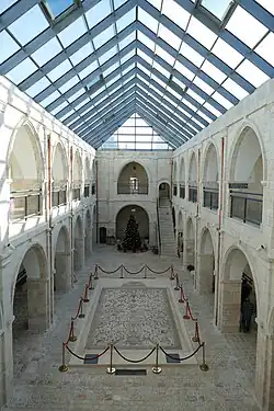 The museum is housed in a historic building within the Armenian Patriarchate compound. The architecture combines traditional Armenian and local Levantine styles, characterized by thick stone walls, vaulted ceilings, and intricate geometric carvings. The layout of the museum is designed to harmonize with the monastic atmosphere of the surrounding St. James Monastery. A new roofing of the inner courtyard was added by French team specialized in museum design, since this opening is often prone to flooding in rainy weather.[6]