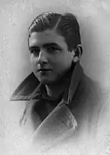 Mariano frequented schools in Pamplona and Andoain; in the early 1930s he entered a preparatory college for Seminario Mayor in Saturrarán.[13] Following 2 years he resigned religious career and entered Instituto of Pamplona; the civil war broke out when Zufía was in midst of bachillerato course.[14] He volunteered to requeté, but following 2 months on the frontline in Sierra de Guadarrama he fell ill and was treated in a hospital in Burgos. When released he resumed education and completed another grade, until in January 1937 he volunteered to requeté again.[15] Followed few months he returned home and completed the bachillerato. In late 1938 he applied to aviation school but was rejected due to poor eyesight.[16] Instead, as 18-year-old, he was drafted. Zufía applied to the alferéz provisional school in Pamplona, where he remained assigned until after the war. Following few months of service in Valencia in late 1939 he resigned from the army and took courses in commerce. In 1942 he was employed at junior position in the Pamplona branch of Banco de Bilbao.[17]