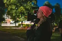 ![]() Marija Kavtaradzė on the set of the film Slow (2023), Vilnius, night scene. | |