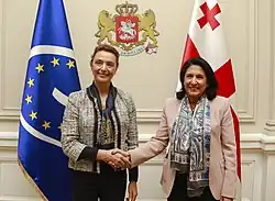 Marija Pejčinović Burić (pronounced [mǎrija pejt͡ʃǐːnoʋit͜ɕ bûrit͜ɕ]; born 9 April 1963)[1] is a Croatian politician of the centre-right Croatian Democratic Union party who served as Minister of Foreign and European Affairs and First Deputy Prime Minister of Croatia from 2017 to 2019. She was the third woman to hold the post of foreign minister, following Kolinda Grabar-Kitarović and Vesna Pusić. Pejčinović Burić previously served as a Member of Parliament during its Sixth Assembly (2008–2011), representing the 6th electoral district.