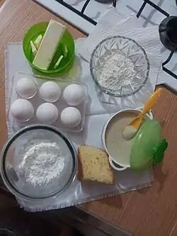 In order to prepare Marquesote, it is important to make the dough mixture correctly. First, the egg whites are beaten, adding the yolks, sugar, baking powder, and cold melted butter afterwards. This is beaten until there is a homogenous mixture free of lumps.[1][2] When the initial volume of the mixture doubles, it is poured into rectangular molds. These molds have been greased beforehand and are covered with brown paper.
