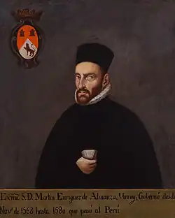 Enríquez was 60 when he was appointed viceroy in New Spain. He brought strength and stability in the wake of the encomenderos' conspiracy of the son of conqueror Hernán Cortés, Don Martín Cortés and other encomenderos who challenged the crown's power. He was subsequently viceroy of Peru, from September 23, 1581 until his death in 1583, a post he reluctantly accepted at age 72.[1] He was a very able administrator in Mexico, asserting crown control, and effective in establishing defenses against northern natives who threatened the vital link between the silver mines in north and Mexico's center.[2]