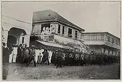 On 28 October 1898, Delgado marched into Santa Barbara and took control of the municipal building. On that same day, simultaneously uprisings took place in towns across Iloilo. On 17 November 1898, Delgado was promoted to Lieutenant general. On 24 December 1898, the Spanish forces under the command of General Diego de los Ríos evacuated Iloilo[1]: 511 and the Filipino flag was raised on Christmas Day. On 28 December 1898, General Marcus P. Miller leading an American force arrived to conquer Panay. Assisted by warships from Admiral George Dewey's command, they lowered the Filipino flag and hoisted the flag of the United States, signifying American control.[2]