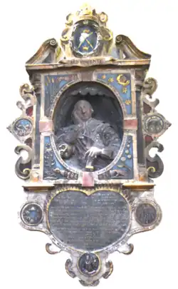 Mural monument to Nicholas Blake (d.1634), 9 year-old son of Rev. Martin Blake, erected by his father in St Peter's Church, Barnstaple