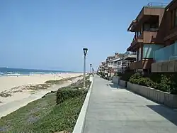 The path continues south through Playa Del Rey to Dockweiler State Beach (which abuts Los Angeles International Airport and the city of El Segundo), "which is wide, clean, sandy and mostly pleasant".[9]