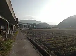 Fukuoka's farm in Shikoku was taken over by his son and daughter-in-law in the late 1980s, as Fukuoka reached an advanced age.[41] His grandson also took up farming. Many of the farm's iyokan and amanatsu mikan trees remain,[3] although some old iyokan were replaced by new varieties of fruit. Woodlands remain along with orchards, including some areas of wild vegetables still growing amongst them. Some areas of straw-mulched cropping continue to produce grains and vegetables. The farm also features an orchard area of ginkgo trees, shiitake mushroom crops growing on tree logs in shady woodland, and plantings of limes, grapefruits, feijoas, avocados and mangoes.[42][43]