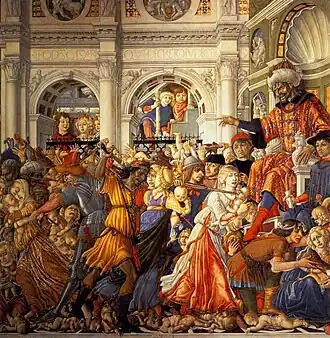 Massacre of the Innocents is a tempera on panel painting by Matteo di Giovanni, produced between 1450 and 1500 possibly in 1468, 1478, or 1488) probably in Siena. It was commissioned by Alfonso II of Naples, then living in Siena as part of the campaign against the Medici. It was probably produced to commemorate the inhabitants of Otranto killed by the Ottomans in 1480 whose relics were moved into the church of Santa Caterina at Formiello at Alfonso's request - the same church also originally housed the painting. It is now in the National Museum of Capodimonte.