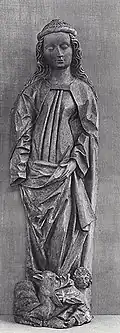 Vykoukal presumes that his workshop employed sculptors trained in Nuremberg, and the head carver of the workshop probably came from Michael Wolgemut's workshop. Swabian inspiration, represented by the late works of Hans Multscher, was also integrated into the Nuremberg tradition. The softly sculpted faces, fashionable female headdresses, the type of cloaks and the rendering of drapery or iconographic scheme link the St. Nicholas sculptures with Michael Wolgemut's Altarpiece of Zwickau (1479).[5][6] Other surviving works, however, have only simplified and rusticated this pattern. Established medieval workshop practice and working according to established patterns does not even allow the individual contribution of individual carvers to be determined. Vykoukal also questions the meaningfulness of identifying the carver by the Madonna of Kamenná Street, which is not one of the finest works in his supposed body of work.[1]