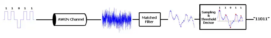 To increase our signal-to-noise ratio, we pass the received signal through a matched filter. In this case, the filter should be matched to an NRZ pulse (equivalent to a "1" coded in NRZ code). Precisely, the impulse response of the ideal matched filter, assuming white (uncorrelated) noise should be a time-reversed complex-conjugated scaled version of the signal that we are seeking. We choose