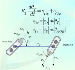 If the target's length is known as well as the present range, the operator measures apparent length of the ship in the form of a bearing measurement (using the stern as the reference point). The formula is: inclinometer angle = L × Cos Ø / R, where: L is the length of ship, Ø is target angle and R is present range.