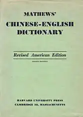 ![]() Mathews' Chinese–English Dictionary book cover (1943) | |