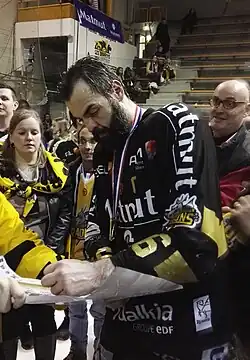 Upon elimination from the Playoffs with the Freezers, Roy returned to North America for the off-season. On April 23, 2013, with his previous NHL club, the Tampa Bay Lightning, suffering from a depleted blueline, Roy was signed to a contract for the final game of the Lightning's 2013 season,[6] before returning to Hamburg for the 2013–14 season. In March 2015, he inked a new two-year deal with the Hamburg Freezers.[7] In May 2016, his Hamburg stint ended prematurely as the organization folded.[8] Roy had spent a total of four years with the Freezers.