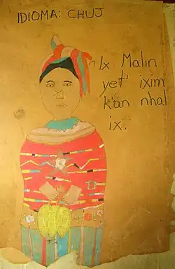 Drawing with text written in the Chuj language from Ixcán, Guatemala