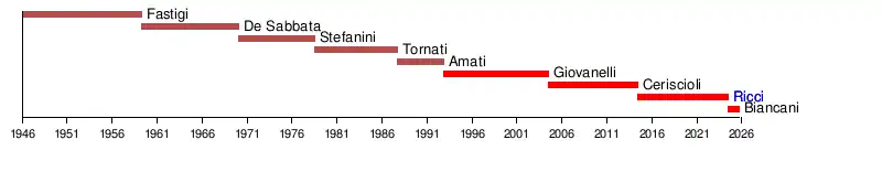 The current mayor is Andrea Biancani (PD), who took office on 13 June 2024.[1]
