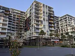 Meadowbank is a mixed commercial-residential area. Meadowbank features a small group of shops on either side of Meadowbank railway station and a shopping centre within the residential apartment complex to the south, along Bay Drive.