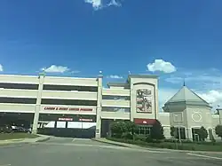 On September 5, 2007, a ceremony was held to mark the beginning of the grandstand removal, which was necessary to clear space for the permanent casino.[17] The permanent casino opened on April 15, 2009; the temporary building was also closed on this date. Amenities include a 350,000-square-foot (33,000 m2) casino, food court, café restaurant, premier steakhouse with view of the race track, covered grandstand, simulcast viewing area, VIP boxes, and a 24-lane, state-of-the-art bowling center.[18] The Meadows features over 3,300 slot machines.