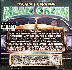 Mean Green is a compilation album released by American hip-hop record label No Limit Records. It was released on September 29, 1998, and featured a majority of No Limit's artists, as well as other rappers including UGK and Mack 10. The album peaked at No. 9 on the Billboard 200 and No. 6 on the Top R&B/Hip-Hop Albums chart, selling 89,000 copies in its first week of release.[2] The album was certified Gold by the RIAA with over 500,000 copies shipped in just five weeks.[3] The song "Don't Be Mad" by Passion was a success.