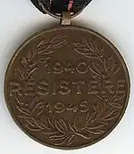 ![]() Resistance Medal 1940–1945 (obverse) | |