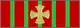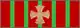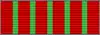 - The suspension ribbon is wavy silk, with a red background, longitudinally cut by five green stripes, each 0.0015 m (1.5 mm) wide and equidistant from each other and the edges of the ribbon; the width is 0.03 m (30 mm), with a length necessary to make the distance from the top of the ribbon to the lower edge of the decoration 0.09 m (90 mm), to obtain the lower alignment of the different insignia; in the center, a miniature war cross, surrounded by two branches of laurel, all in gold.[2]