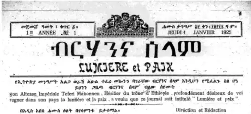 On January 1, 1925, Berhanena Selam was launched. The annual subscription rate was 5 birr and it was published on Thursdays.