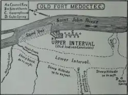- ^ The village, dating from before the 17th century, was situated on a plateau west of the Saint John River. In 1968 the government acquired the Meductic site for the Mactaquac Dam, which flooded much of the Saint John River valley, including Meductic.