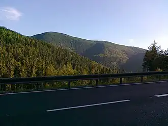 ![]() View from the I/44 road on the slope of Velký Klínovec mountain to the top of Medvědí hora and Dlouhý vrch (on the left, the slope of Hřbety–JZ mountain) | |