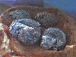 | Megaloolithus at the Museum d'Histoire Naturelle Aix-en-Provence. Eggs of titanosaurid, possibly Hypselosaurus priscus | |