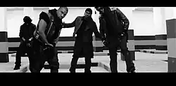 The video was shot in a wide frame with the artists in what looks like a "parking garage, rapping as the camera pans across the room", with a Lamborghini Gallardo LP560-4 featured in the background.[54] The video contains numerous cameos by other artists signed to GOOD, including Kid Cudi, Cyhi the Prynce, and Teyana Taylor.[12] In the video, Big Sean is wearing a turban-styled headpiece as he raps first.[12] At the end of the clip, a Lamborghini Gallardo moves past the screen, and the artists are gone from the scene after it passes by.[12] Marc Hogan of Spin praised the video, writing that "as with the track itself, the visuals at first might not appear to involve anything flashy – just West and friends, all lurking about and looking chic in stark black-and-white. But there's one big exception: If the highlight of the audio is the moment where the synths lift off right before West's laconic verse, then that's where the video peaks, too – watch closely, or you'll miss two Wests lip-syncing for the price of one!"[53] Pitchfork Media's Carrie Batton commented that "it's a simple but cinematographically impressive black-and-white clip with lots of leather and keffiyehs and sharp angles."[55]