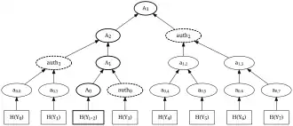 The Merkle signature scheme can be used to sign a limited number of messages with one public key . The number of possible messages must be a power of two, so we denote the possible number of messages as .