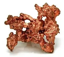 Copper is the eighth most abundant metal in the Earth's crust, is available all over the world, and is one of the few that can appear in a pure state.[7] It is not complicated to work with, and a bare hammering can be enough to transform a nugget into a bead. The eye-catching look of native copper makes it easy to recognize, and even flashier if converted into jewelry, a possible motivation for humankind to start metallurgy with it. An evolutive technological process has been described,[8] although there are authors like Javinovic,[9] who think that it is not necessary to pass through the first stages to reach the last one.