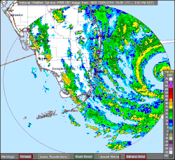 By September 27, the wave was producing sustained tropical storm-force winds[note 1] as reported by the hurricane hunters, although the system lacked the closed circulation required for classification as a tropical cyclone.[10] While the system was passing near Barbados, radar imagery in the Lesser Antilles indicated that the circulation was becoming better organized.[11] Another hurricane hunters flight on September 28 confirmed that a closed circulation developed, recorded surface winds of 58 mph (93 km/h), and observed hurricane-force gusts at the plane's level.[12] These data in conjunction with microwave satellite imagery indicate the system became a tropical cyclone—earning the designation Tropical Storm Matthew—by 12:00 UTC that day; at this time, the storm was centered 20 mi (30 km) west-northwest of Barbados.[1]