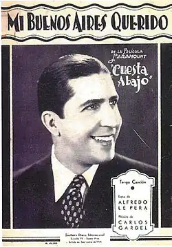 'Mi Buenos Aires querido' (English: My Beloved Buenos Aires) is a tango with music by Carlos Gardel and lyrics by Alfredo Le Pera, released in 1934. It is featured on the soundtrack of its eponymous movie directed by Julio Irigoyen.